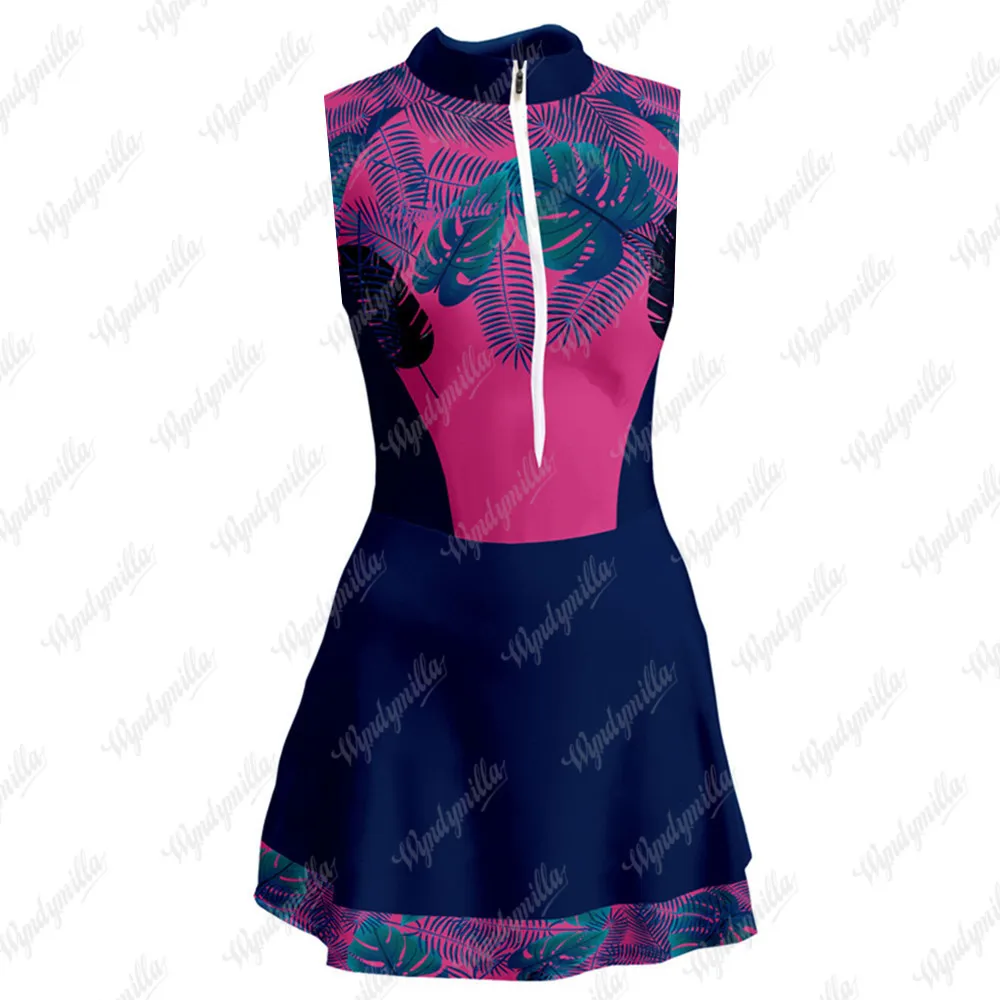 Женский винтажный комбинезон для триатлона, Трикотажный костюм с юбкой