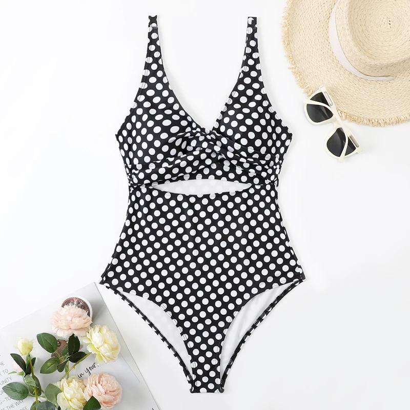 Летние цельные большие купальники в горошек, закрытые женские купал...