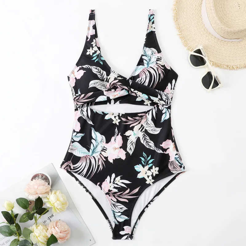 Купальник женский слитный с цветочным принтом, пикантный закрытый к...