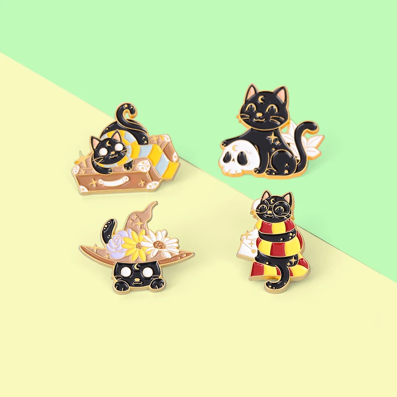Эмалированная заколка в виде черной ведьмы, кошек, черепа, искусств...