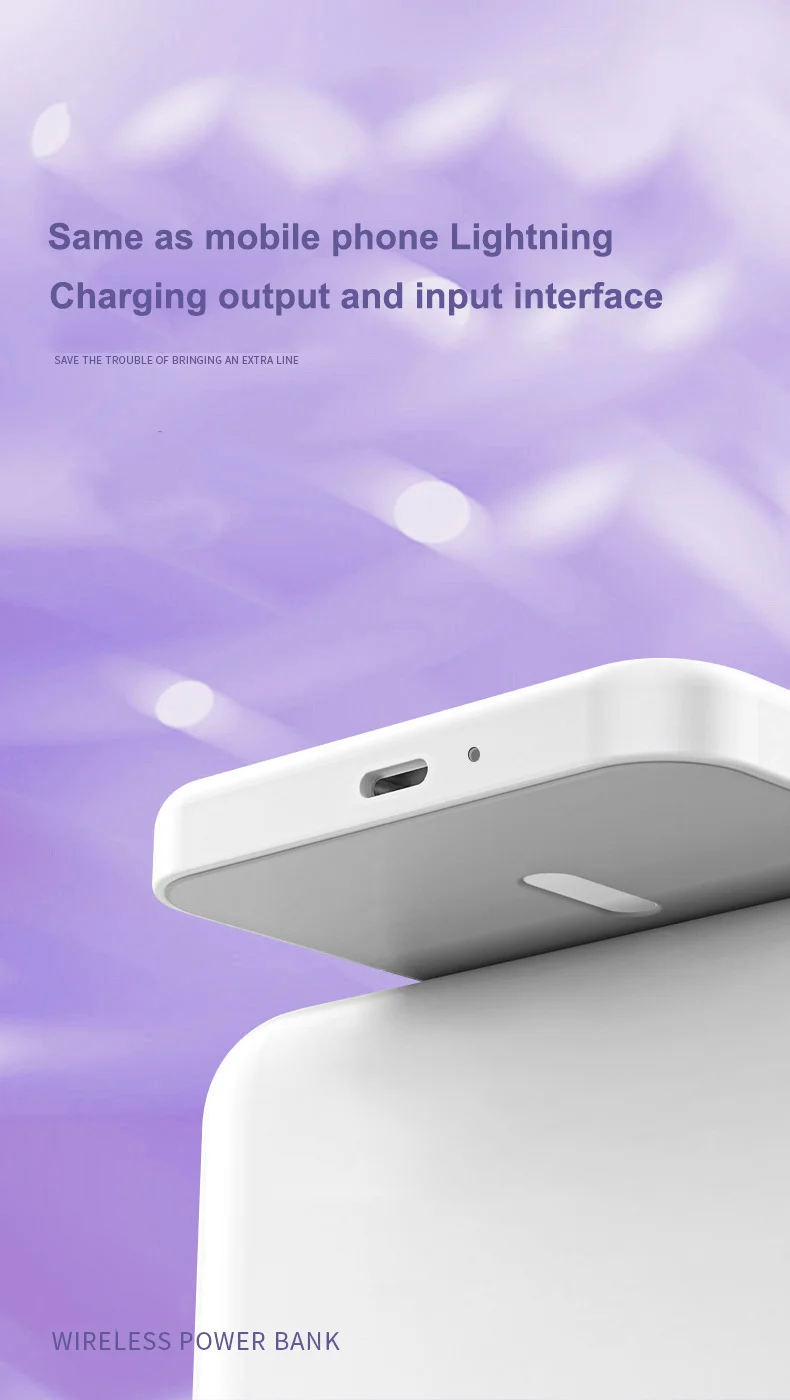Бренд: BneseusНазвание: 1:1 магнитный беспроводной внешний аккумуляторТип ячейки: полимерный литий-ионный аккумуляторТип батареи: литий-ионный аккумуляторМатериал: АБС-пластик + ПоликарбонатВход: 5-9V3A MaxВходной интерфейс: LightningРазмеры параметры: длина 95,8*64,13*11,6 мм толщиной