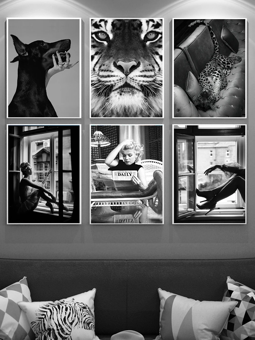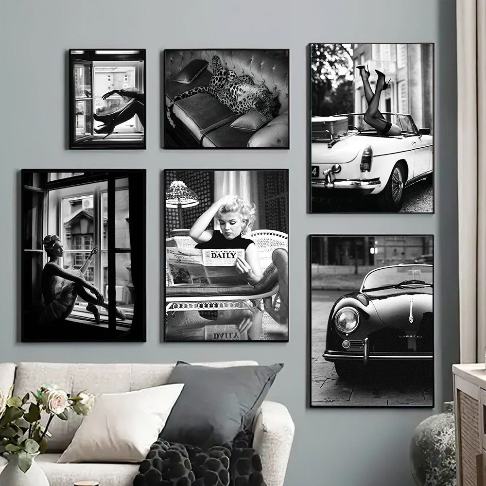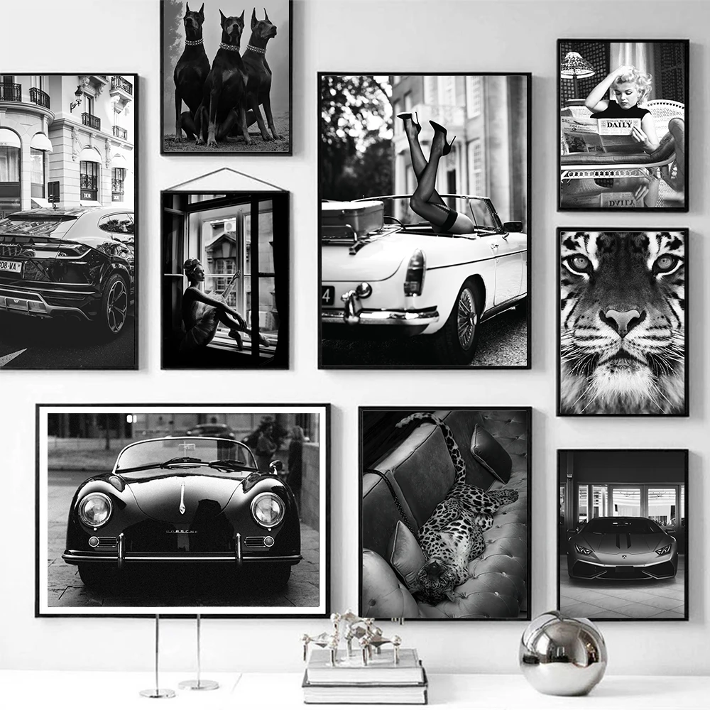 Роскошная звезда автомобиль Собака черная белая Картина на холсте принт скандинавский винтажный фото модный постер настенные картины гостиная домашний декор