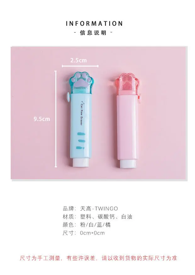 Кавайный ластик-карандаш с кошачьими крапанами, ластик с нажимом, п...