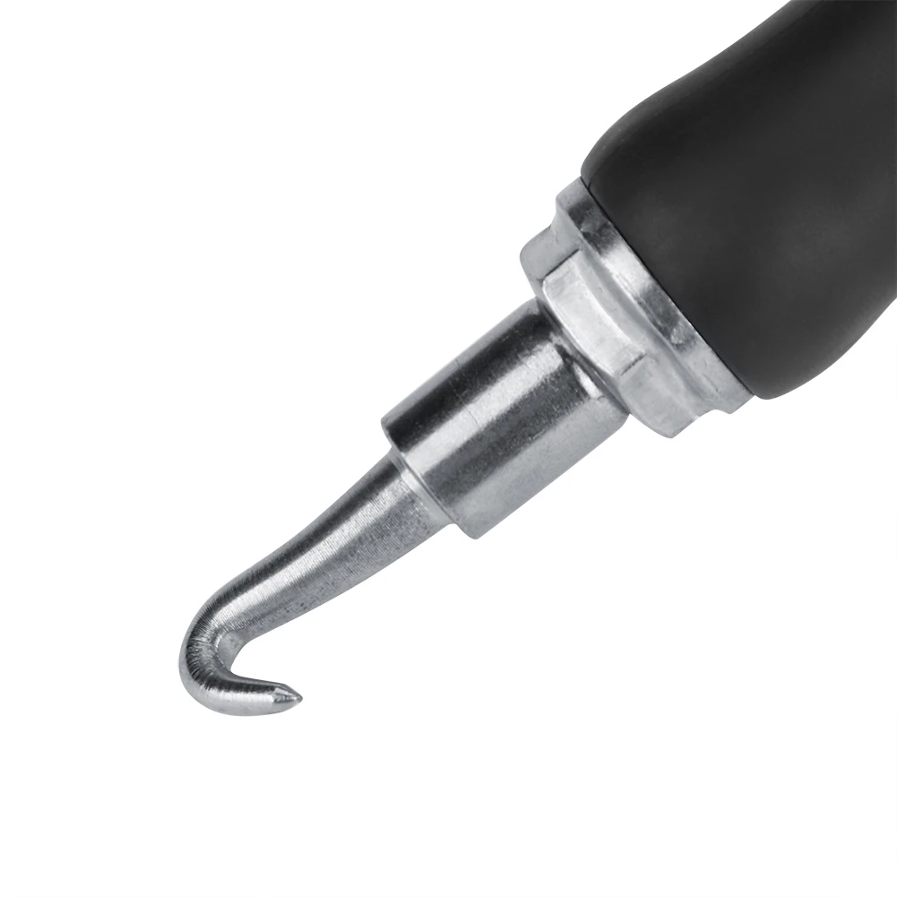 Стальной крючок износостойкий и прочный, мягкая пластиковая ручка удобна для захвата.