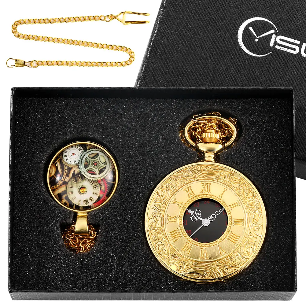 Винтажные подарки на день рождения, набор карманных часов для мужчин и женщин, кварцевое ожерелье, карманные часы с шестеренкой в стиле стимпанк, наборы с подвесками