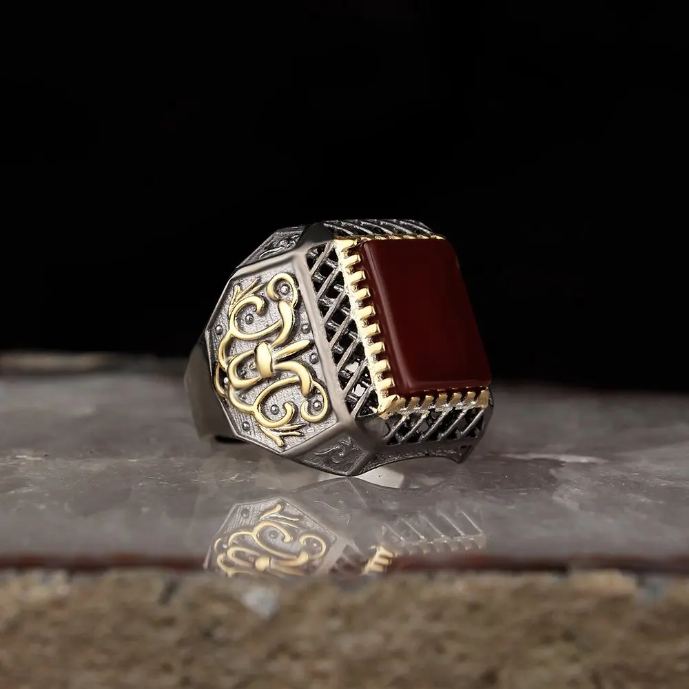 Мужское кольцо из серебра 925 пробы, из Йемена, с агатом, мужские п...
