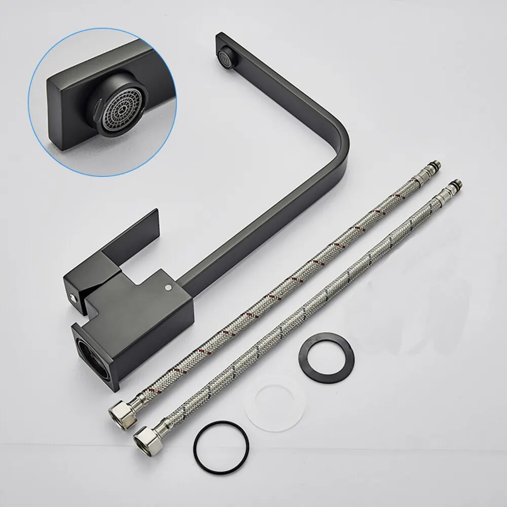 Кран для кухонной раковины, вращающийся на 360 градусов, черный кухонный смеситель с одним сиденьем и одним отверстием