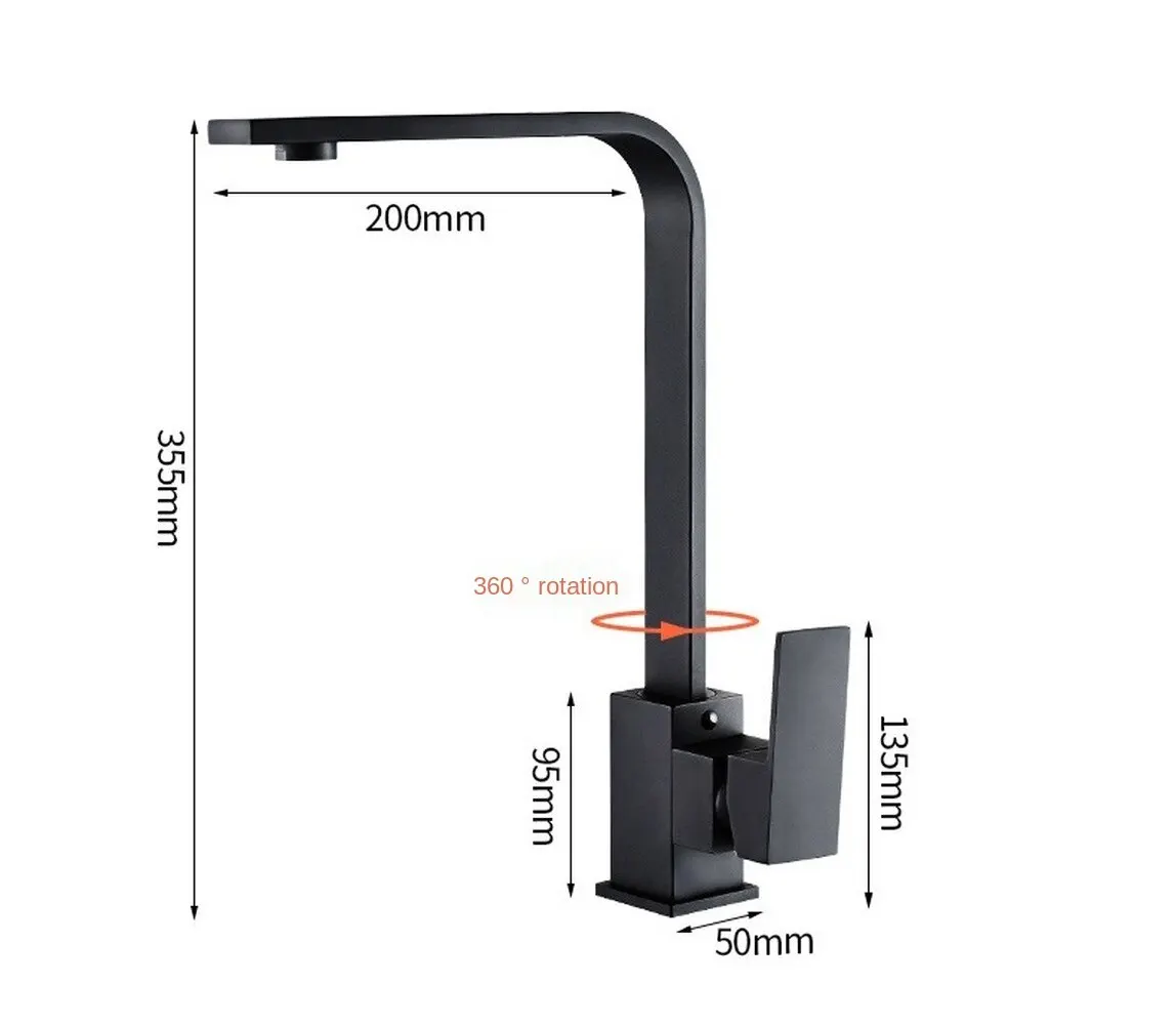 Кухонный смеситель для раковины, вращающийся на 360 градусов, черны...