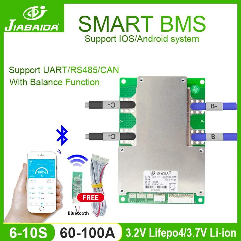 JBD Smart BMS 6S 7S 8S 10S 24V 36V 60A 80A 100A 3,7 V Li-Ion 3,2 V Lifepo4 система управления литиевой батареей Bms хранение