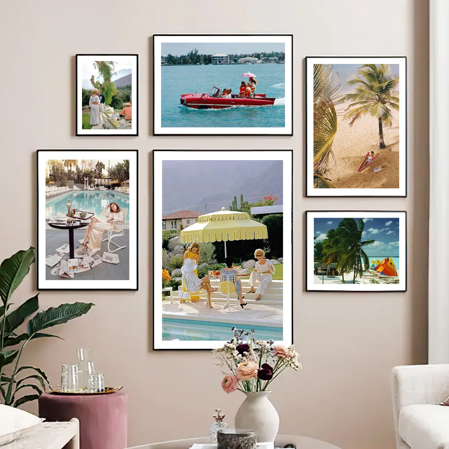 Морской пляж розовый зонтик автомобиль кокосовое дерево настенная К...