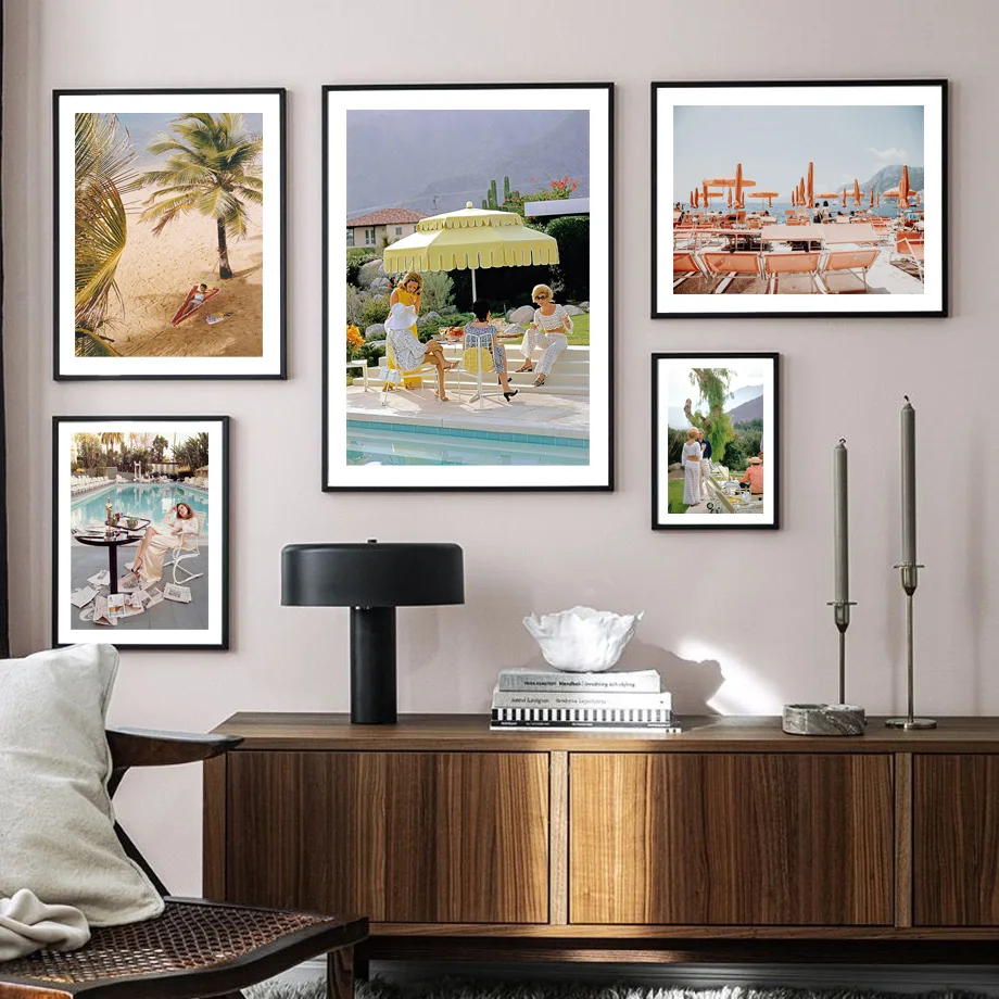 Розовая пляжная доска для серфинга, зонт, кокосовое дерево, настенн...