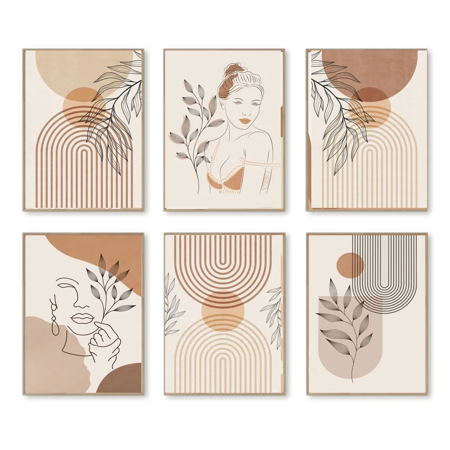 Бохо линия растения лист Женщины Абстрактная Геометрия настенная живопись холст скандинавские постеры и принты картинки для декора гостиной