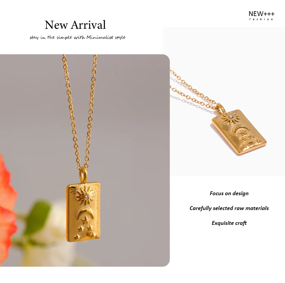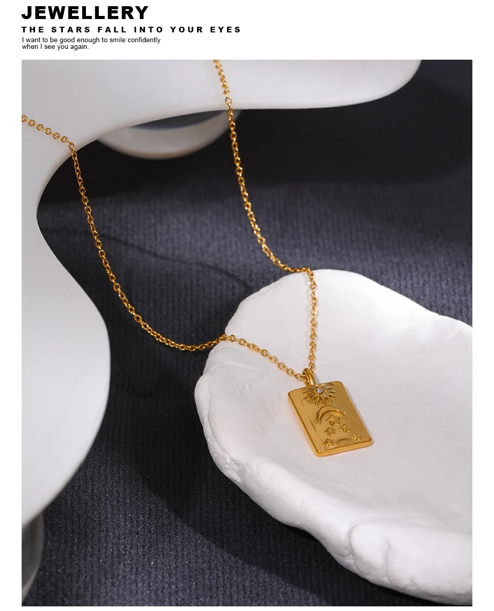 Женское колье из нержавеющей стали, с подвеской в виде солнца, Луны, звезды