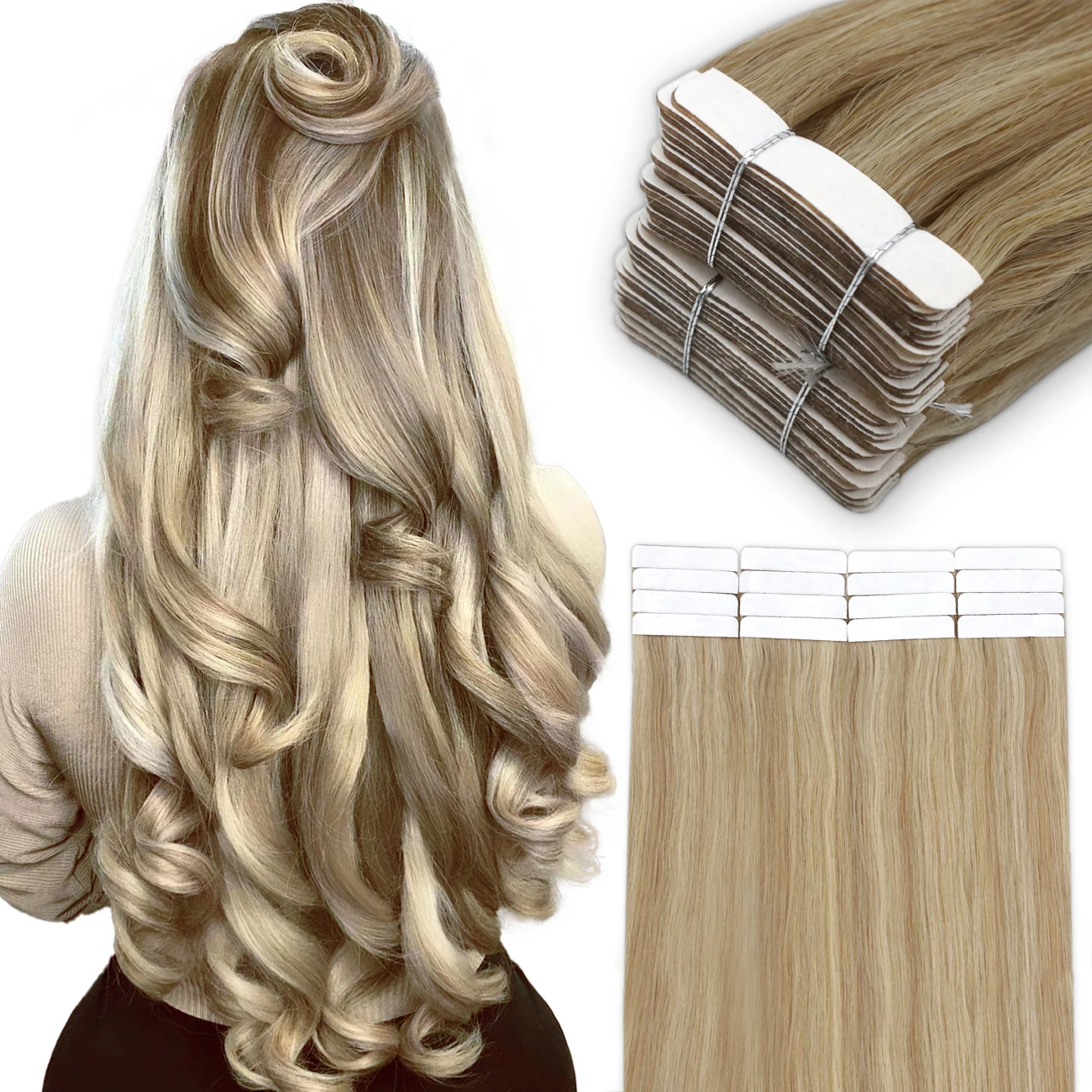 Хайлайтер, лента из человеческих волос для наращивания, европейские натуральные волосы для наращивания, уток кожи, черно-коричневый, 100% натуральные человеческие волосы Remy, волнистые волосы
