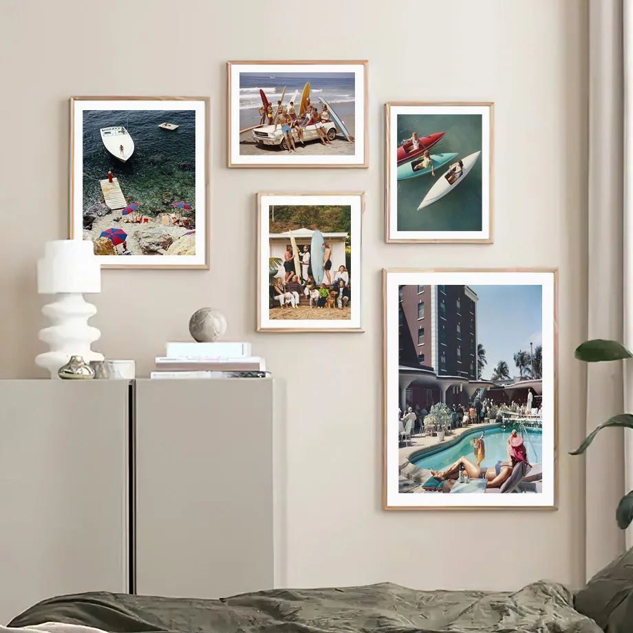 Розовая пляжная доска для серфинга, зонт, кокосовое дерево, настенн...