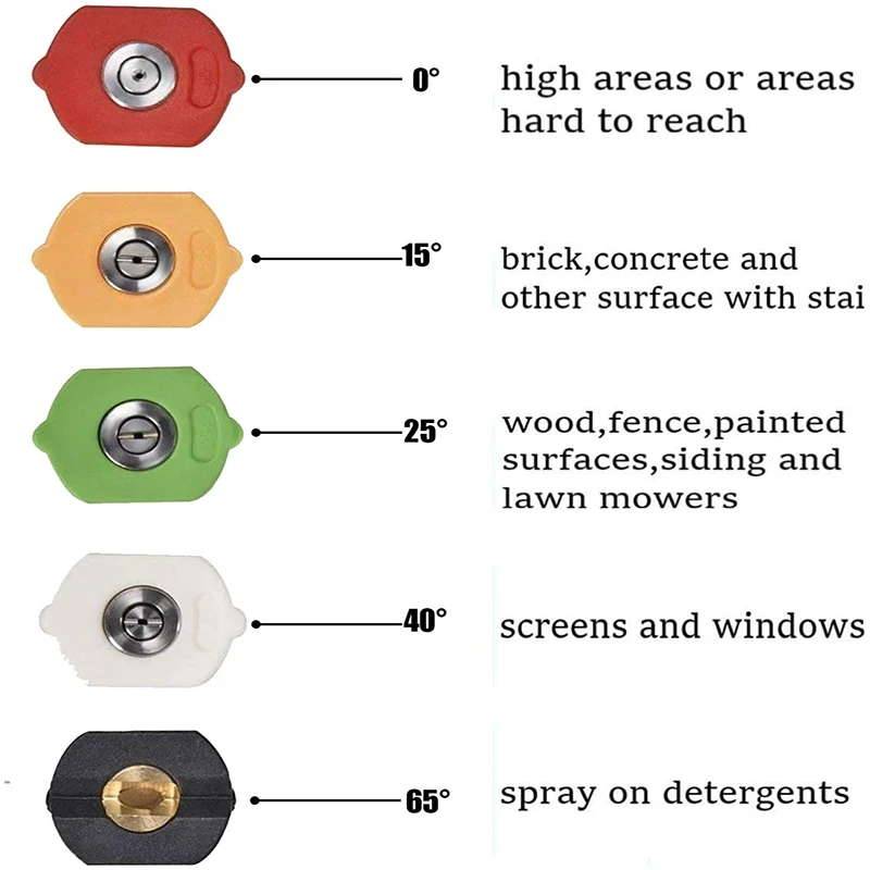 Инструмент для очистки желоба имеет 5 высококачественных наконечников сопла для различных целей. Сопло для мыла и сопла 40, 25, 15 и 0 градусов. Это разнообразие размеров используется для любых работ по уборке!