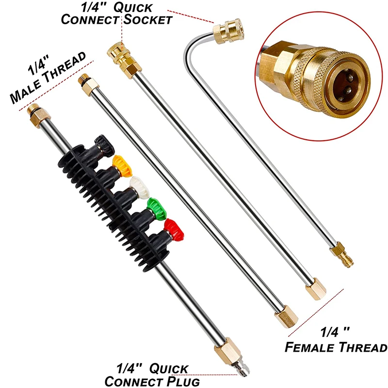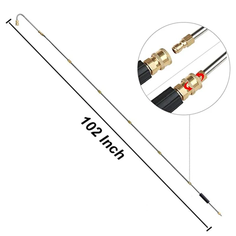 Удлинительные палочки для очистки желоба имеют M22 14 мм наконечник мужской резьбы, и он может быть изменен на 1/4 "быстрое соединение с прилагаемой муфтой. Легко управлять, устанавливать и разбирать.