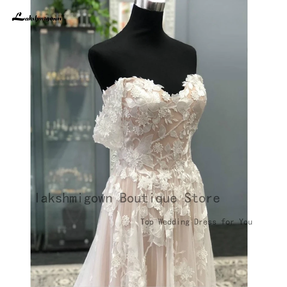 Lakshmigown свадебное платье с цветочным кружевом с открытыми плечами 2022 халаты для принцессы Свадебное Тюль цвета шампанского