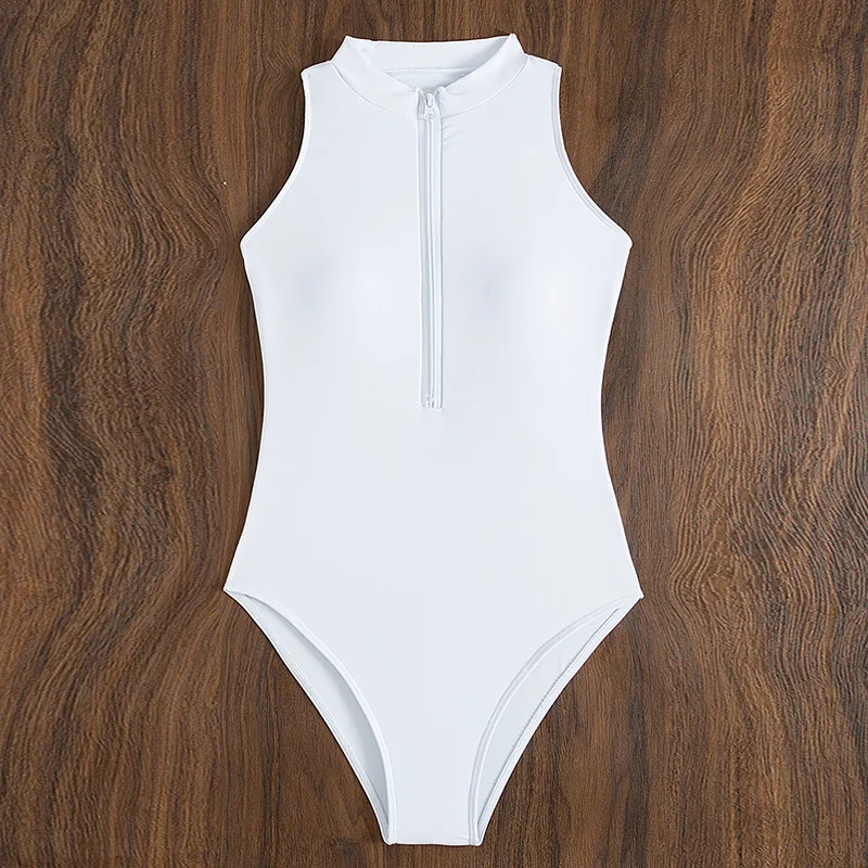 Riseado белый цельный купальник на молнии спереди купальник женский 2022 с высоким горлом костюм для серфинга Racerback Рашгард женский купальный костюм