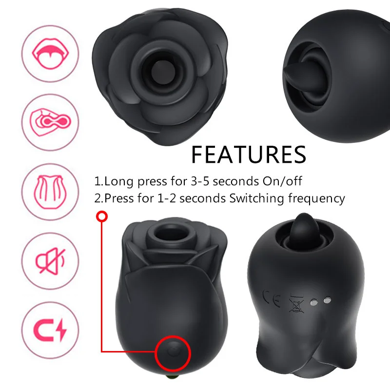 Секс-игрушка для женщин, мощный клиторальный вибратор с черной розой, лижущий язык, двусторонний Вибратор в форме розы для пар