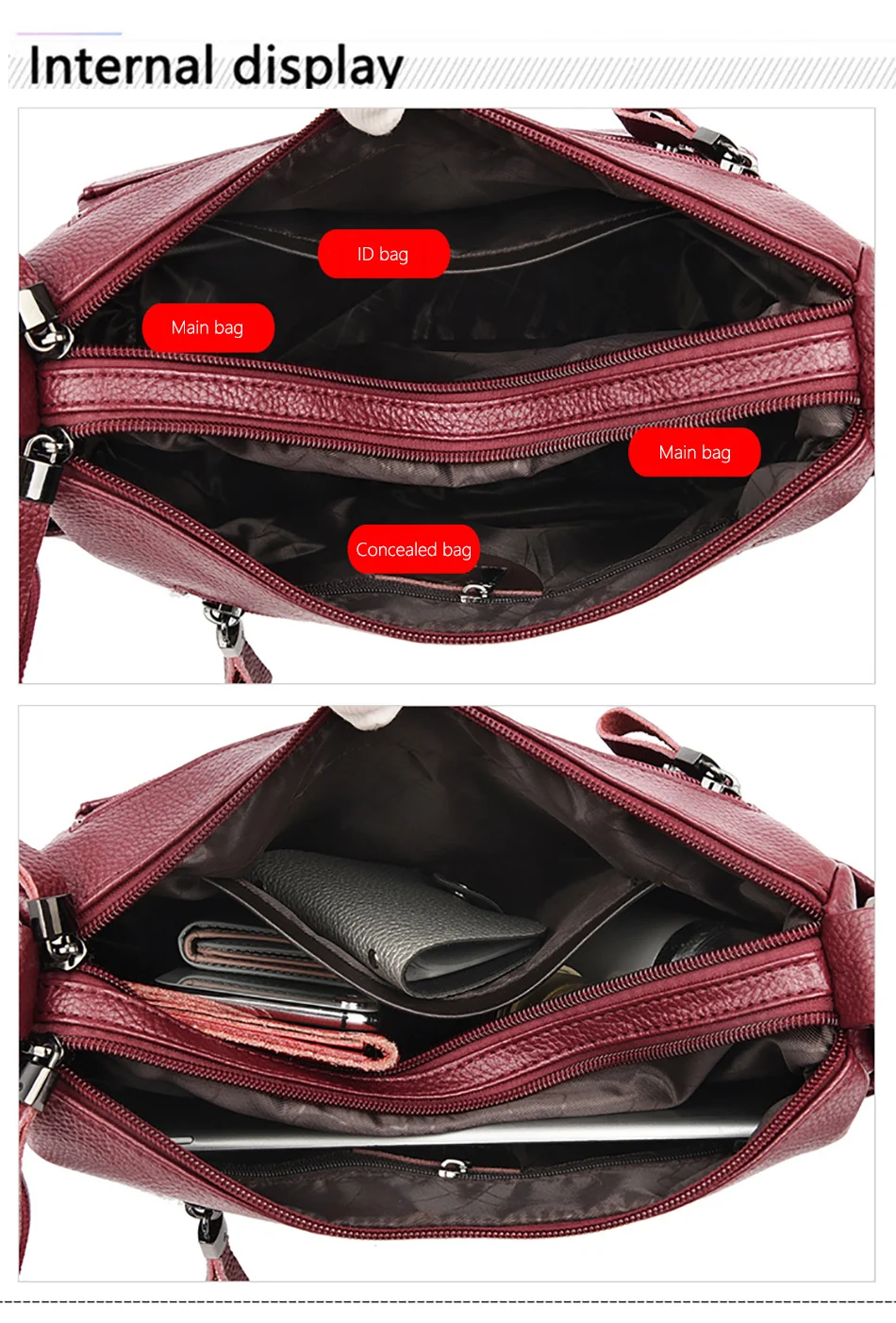 Женская сумка через плечо, из мягкой кожи, с несколькими карманами,...
