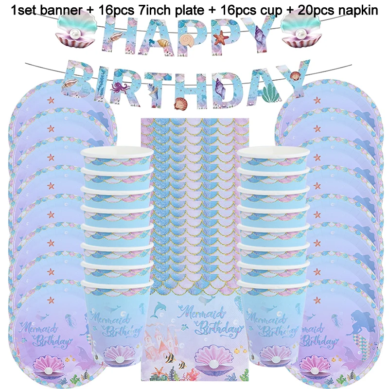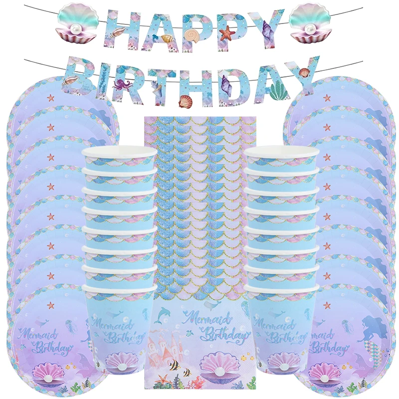 53 шт. набор одноразовой посуды в стиле русалки для дня рождения, салфетки, тарелки, чашки под морем, для будущей мамы, для девочек, принадлежности для вечеринки русалки