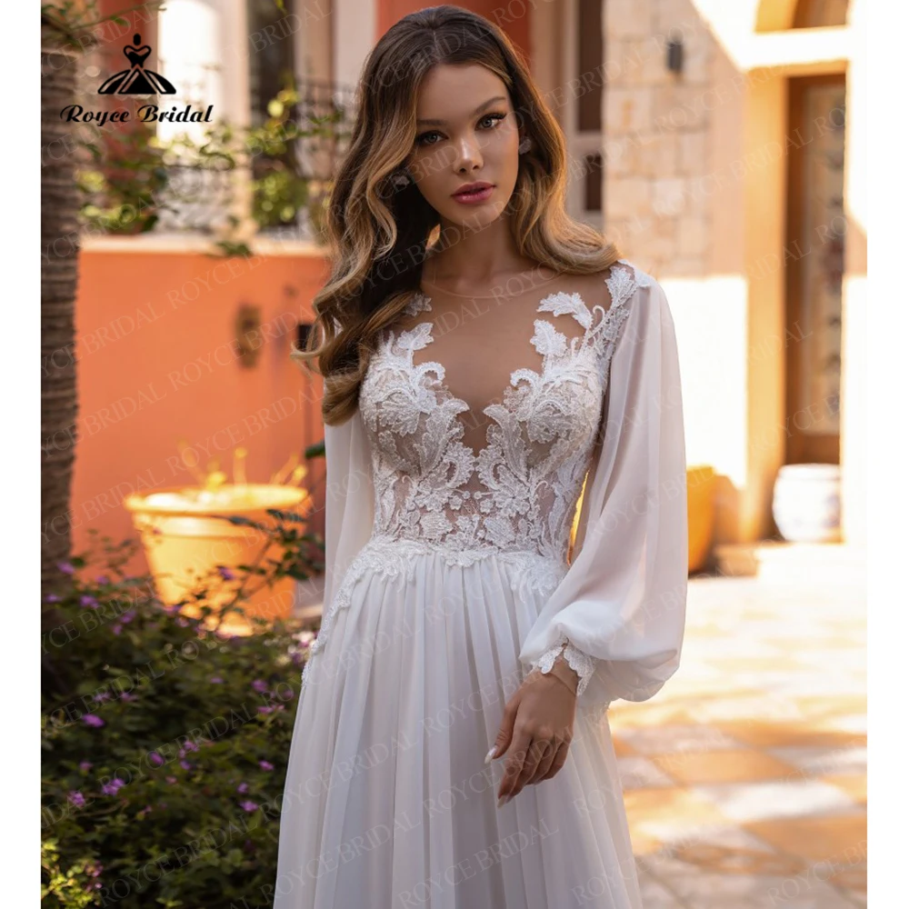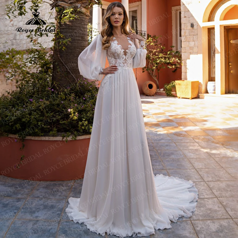 Шифоновое свадебное платье в богемном стиле с пышными длинными рукавами, кружевное пляжное свадебное платье для женщин 2022 robe de mariee простой