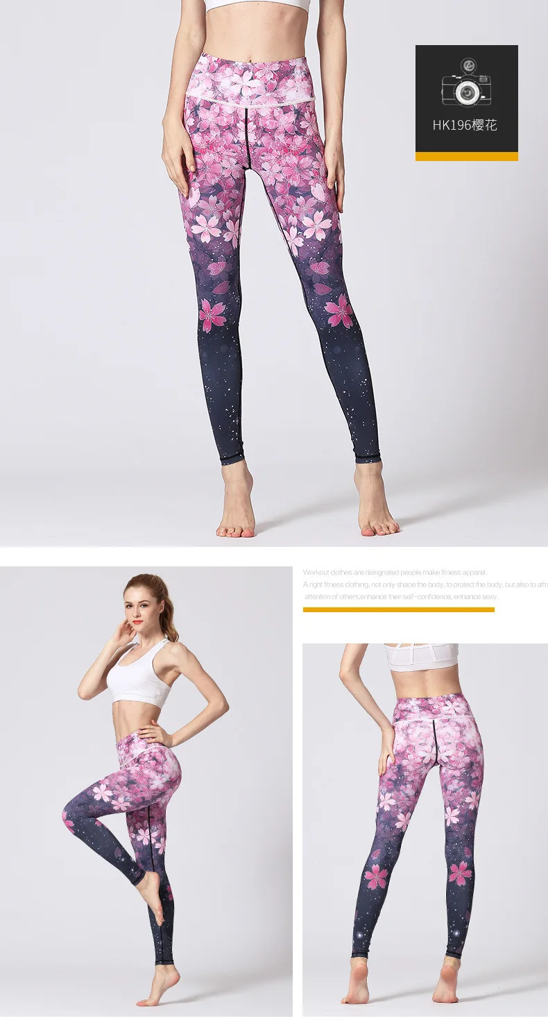 Женские штаны для йоги с цветочным принтом, спортивные Леггинсы с высокой талией, колготки для девушек, тренировочные штаны для бега с эффектом пуш-ап, тренировочные штаны для живота