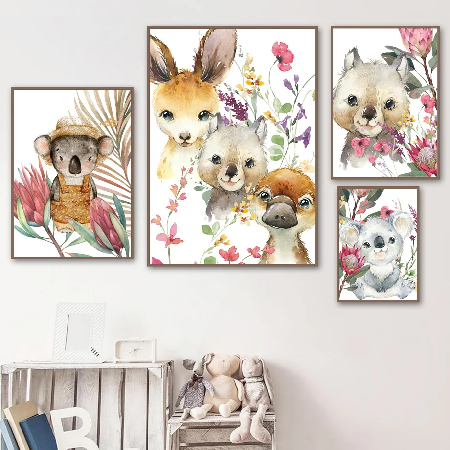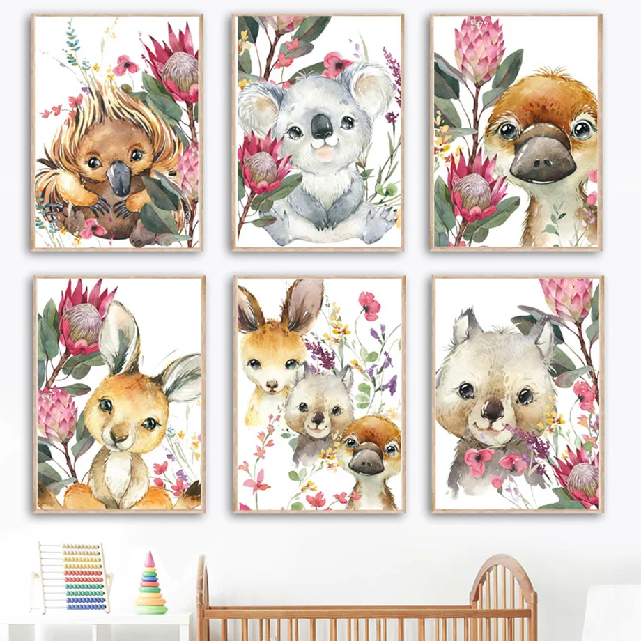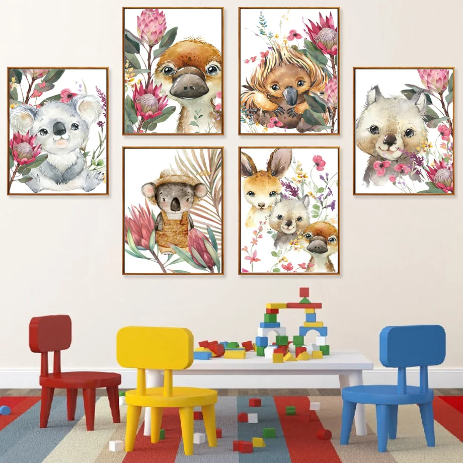Настенная картина радужный кролик, Зебра, жираф, бегемот, животное,...