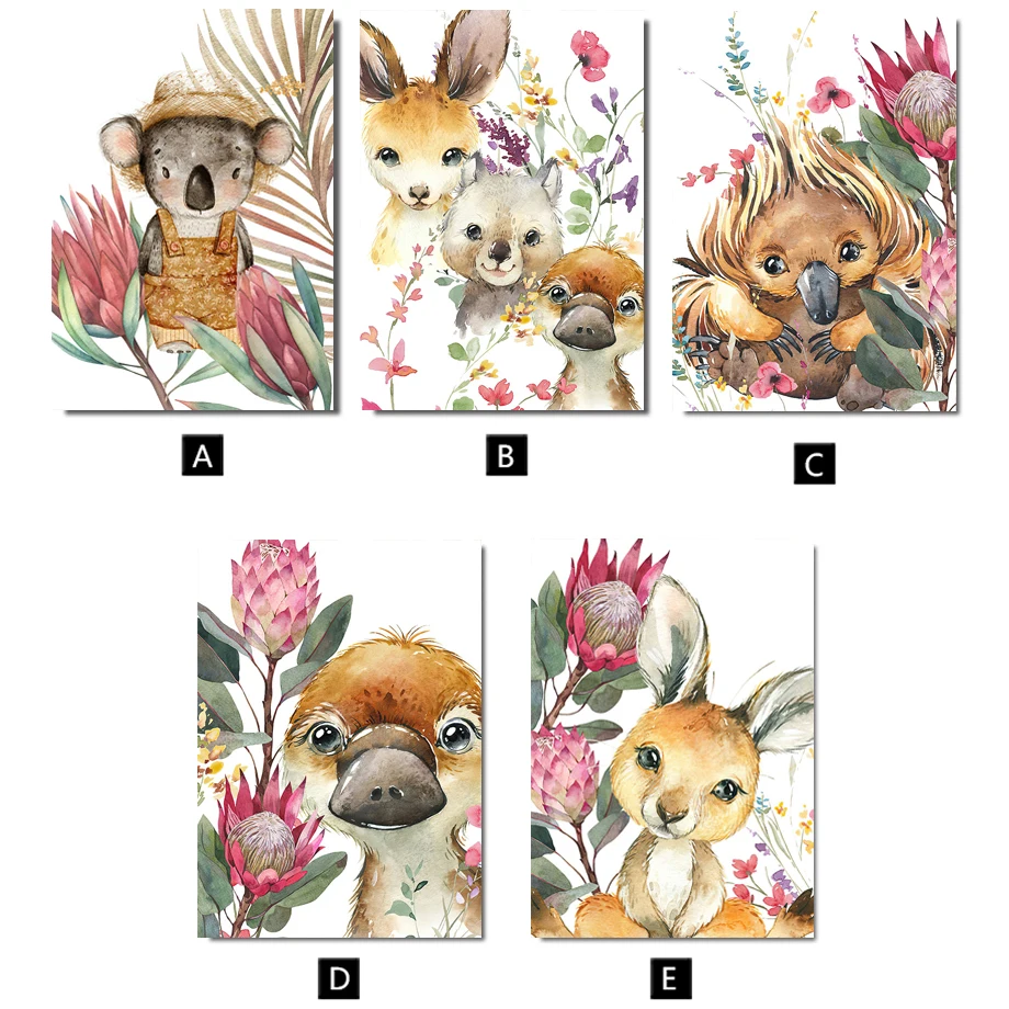 Акварельные Мультяшные животные воздушный шар кролик панда, коала С...