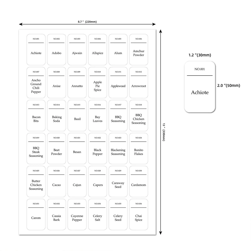 Широко применимые: этикетки для специй предназначены для большинства специй, таких как бамбуковые баночки и круглые или прямоугольные стеклянные банки для специй, расположены вертикально; Отличный подарок для шеф-повара, любителей приготовления пищи, домашние повара, домашние согревающие события и многое другое!