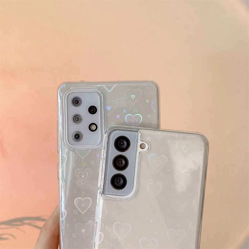 Лазерная любовь сердца блеск Etui для Samsung A32 A22 A21s A12 A10 для Galaxy A31 A40 A20e S10e A02s Силиконовый ТПУ прозрачный чехол Бампер