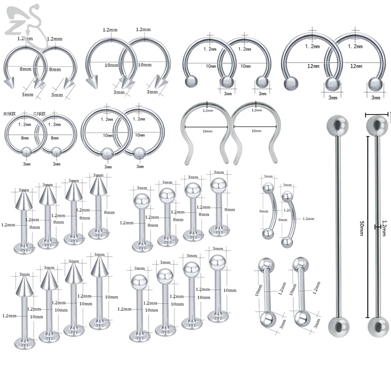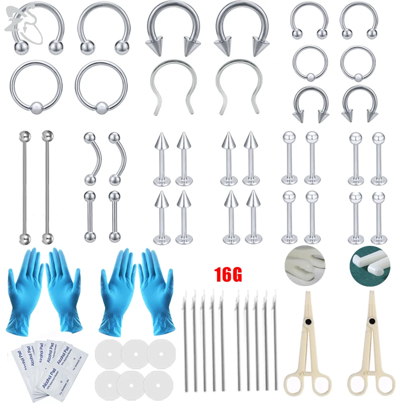 Набор ZS инструмент для пирсинга тела из нержавеющей стали для пирсинга живота, бровей, губ, носа, кольца, тела, игольчатый инструмент 14G-20G, одноразовый профессиональный