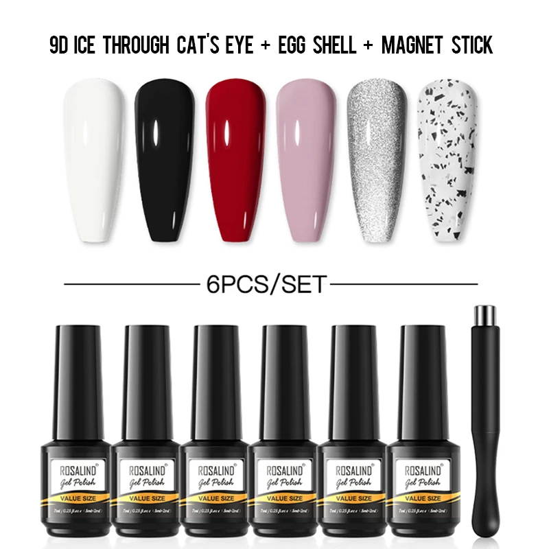 ROSALIND набор гель-лаков для ногтей UV средство для удаления замачивания полуперманентный Гибридный зеркальный лак с магнитной палочкой для дизайна ногтей требуется базовое верхнее покрытие