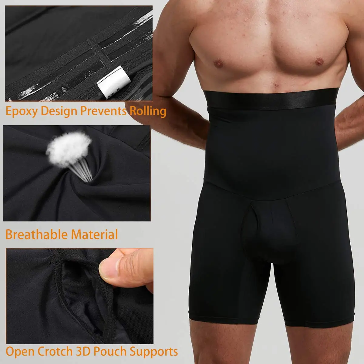 Утягивающее боди с высокой талией для мужчин, шорты-боксеры для похудения, Утягивающее нижнее белье с утягивающими длинными штанинами