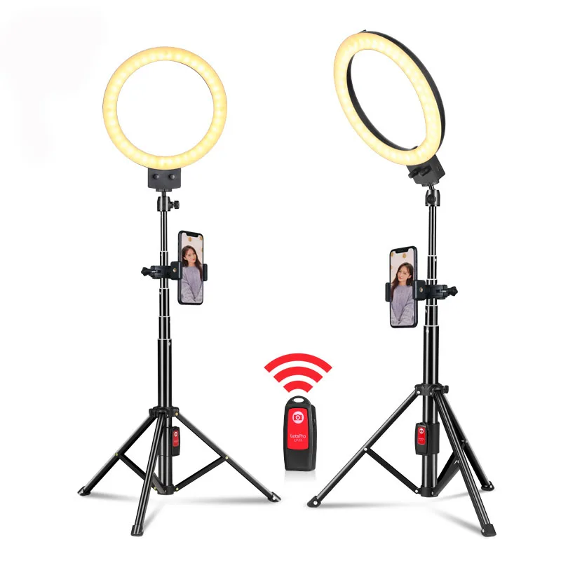 Приглушаемая светодиодная кольцевая лампа для селфи, студийный светильник со штативом и USB-разъемом, подходит для нанесения макияжа, съемки фото и видео на сотовом телефоне