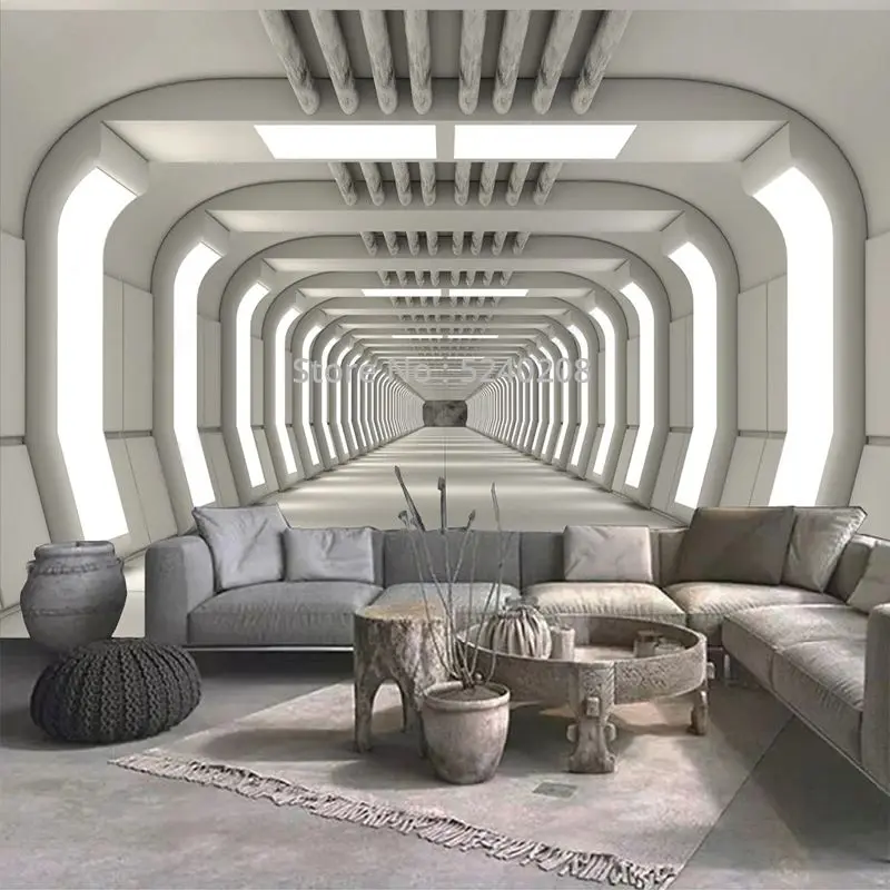 Пользовательские Настенные обои 3D современные технологии чувство коридора прохода Wal живопись Гостиная класс абстрактное искусство Papel де Parede