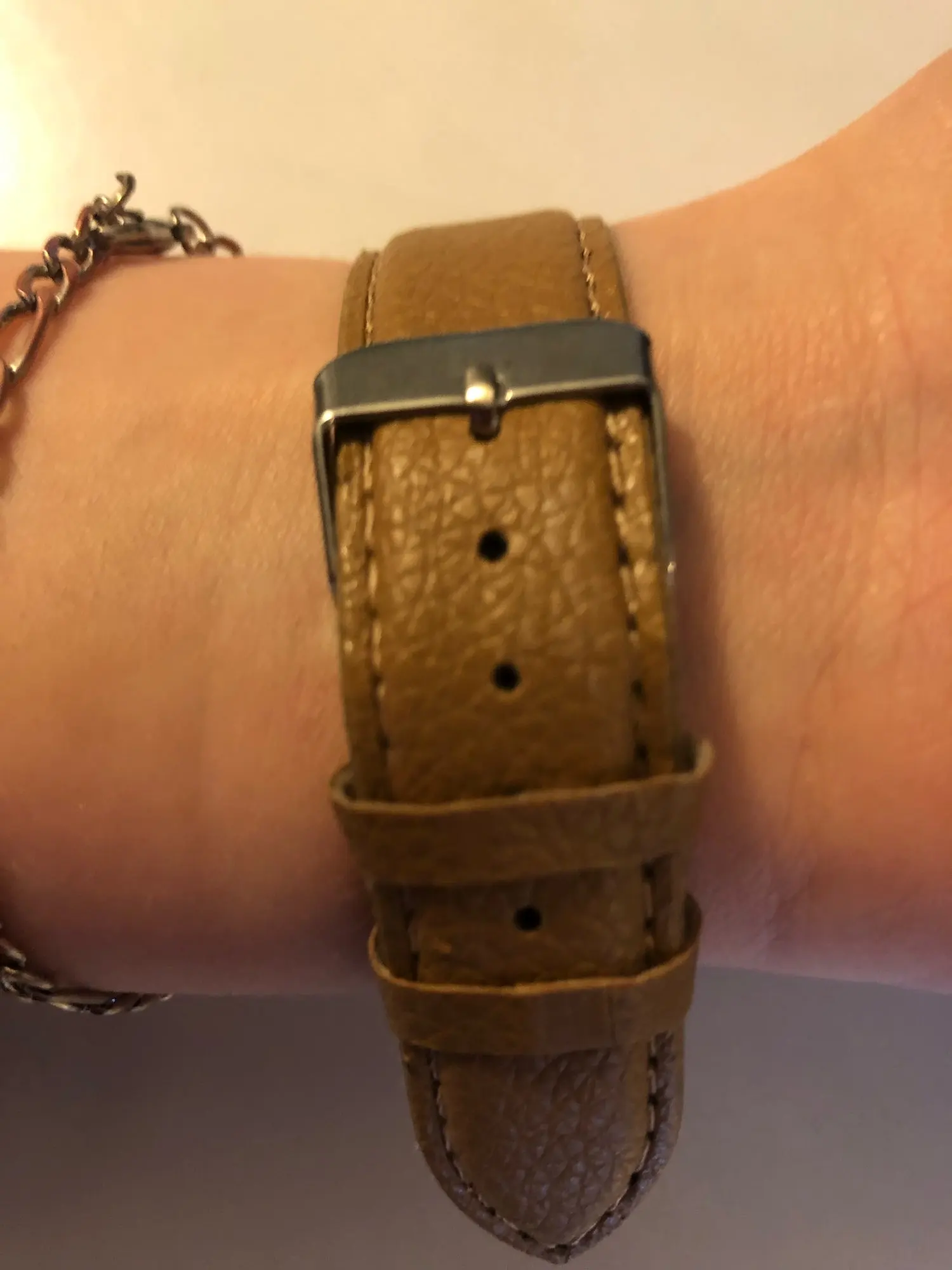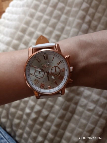 Дизайн и цвет такой же, как на картинке, не выглядят дешево, но по ощущениям дешевая на ощупь, лямки слегка гибкий по сравнению с жесткой тот, который является хорошая вещь, которую я вещь Быстро и дешево, красивые часы и качество не плохое