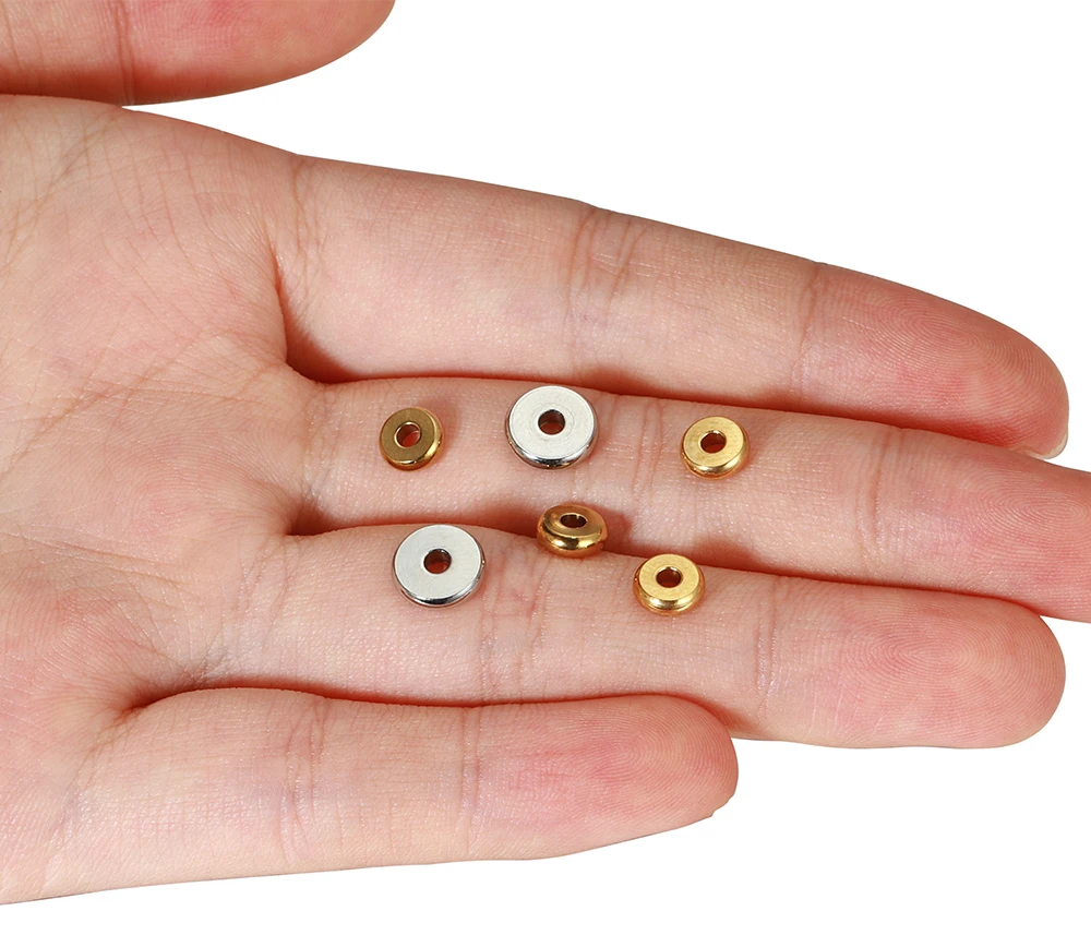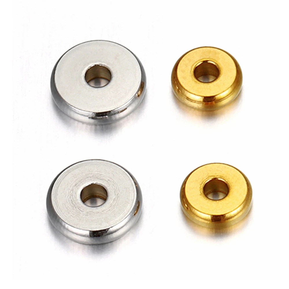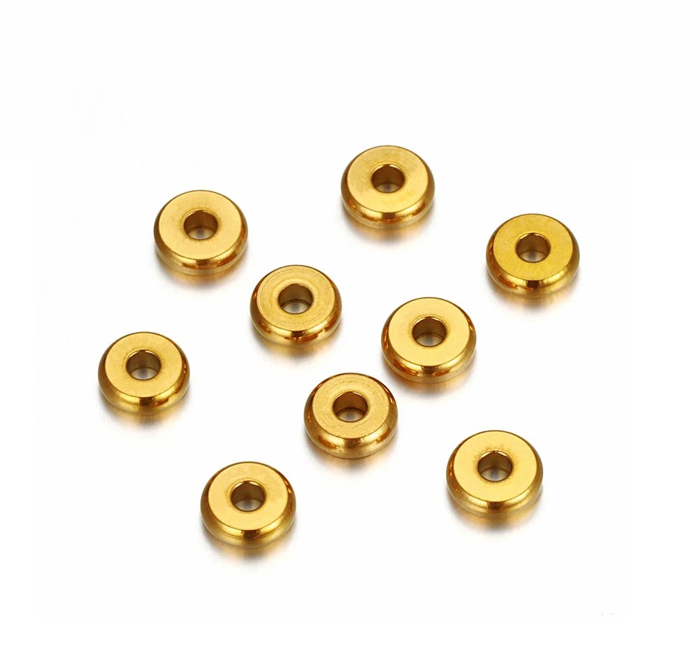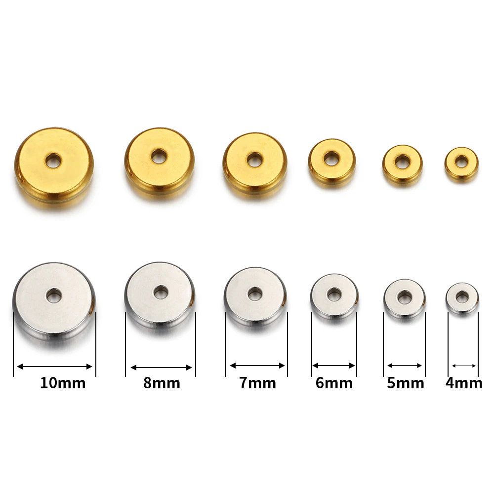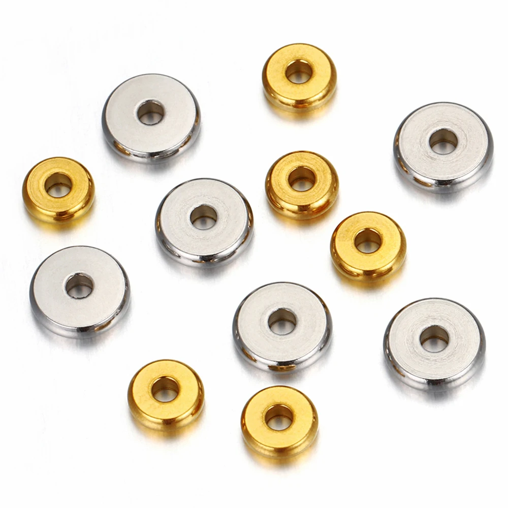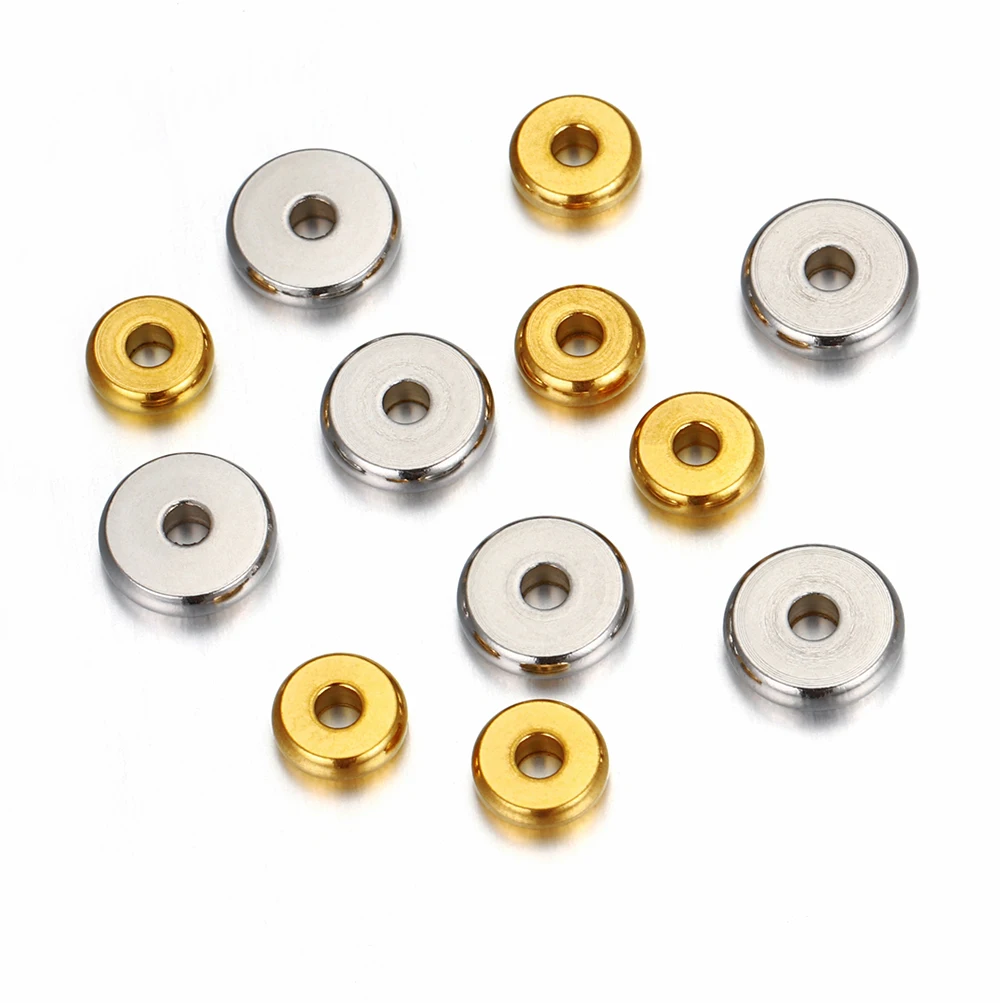 Разделительные бусины из нержавеющей стали 20 шт.лот 304, 4 5 6 7 8 10 мм, золотые плоские круглые бусины россыпью для изготовления браслетов своими руками, ювелирных изделий