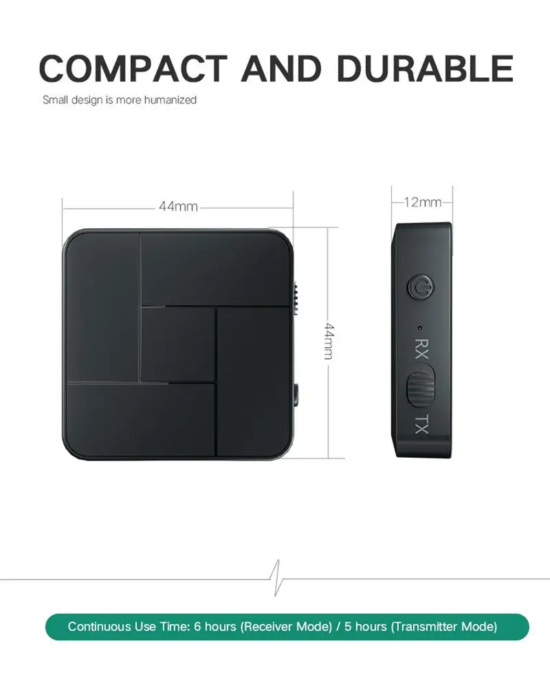 Лёгкое переключение между передатчик и приемник режимов с простым щелчком переключателя: легко подключить, используя передовые технологии Bluetooth и 3,5 мм аудио кабель (все указанные аккумуляторы входят в комплект поставки).Широкая Совместимость: с помощью прилагаемого 3,5 мм кабель и 3,5 мм до 2RCA кабель, этот приемник передатчик адаптер может широко использоваться на большинство устройствСупер-портативный: Всего 44 мм (1,73 ") поперек и весит всего 18 г (0,63 унций), проскальзывает этот передатчик и приемник, вы можете взять его на ходу без каких-либо усилий.