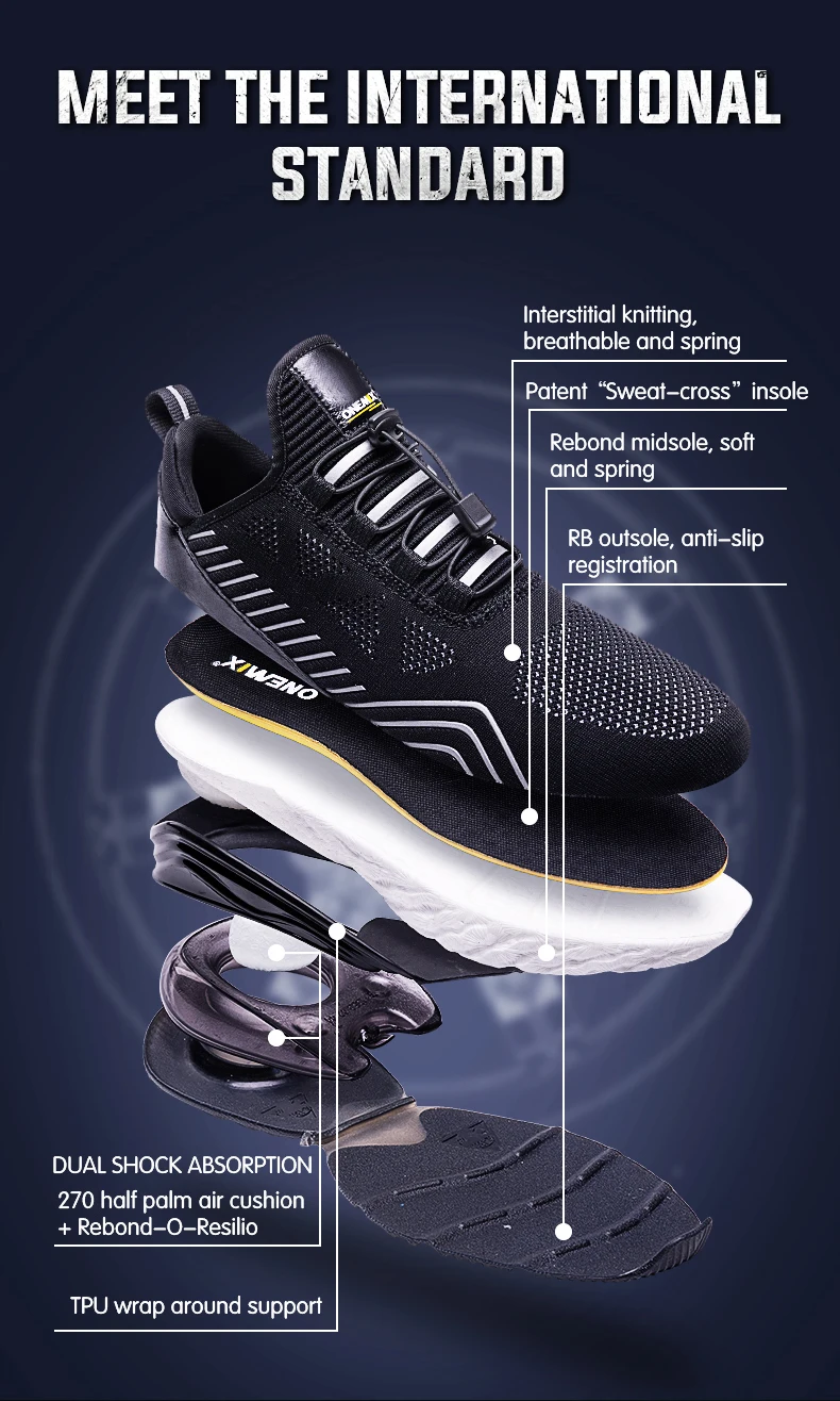 Соответствует международному стандартуДвойная амортизация 270 полупальмовая воздушная подушка + rebond-O-ResilioОпора из ТПУЛакированная стелька «пот-крест»Мягкая и весенняя подошва rebondRB подошва, нескользящая подошва