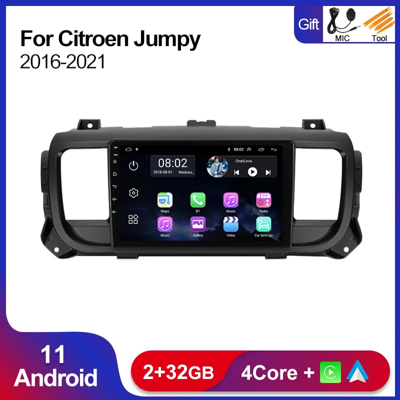 Автомагнитола 2DIN, 2 + 32 ГБ, Android 11, для Citroen Jumpy 3 SpaceTourer 2016-2021, автомагнитола, GPS-навигация, Wi-Fi, BT, RDS, Carplay, без DVD