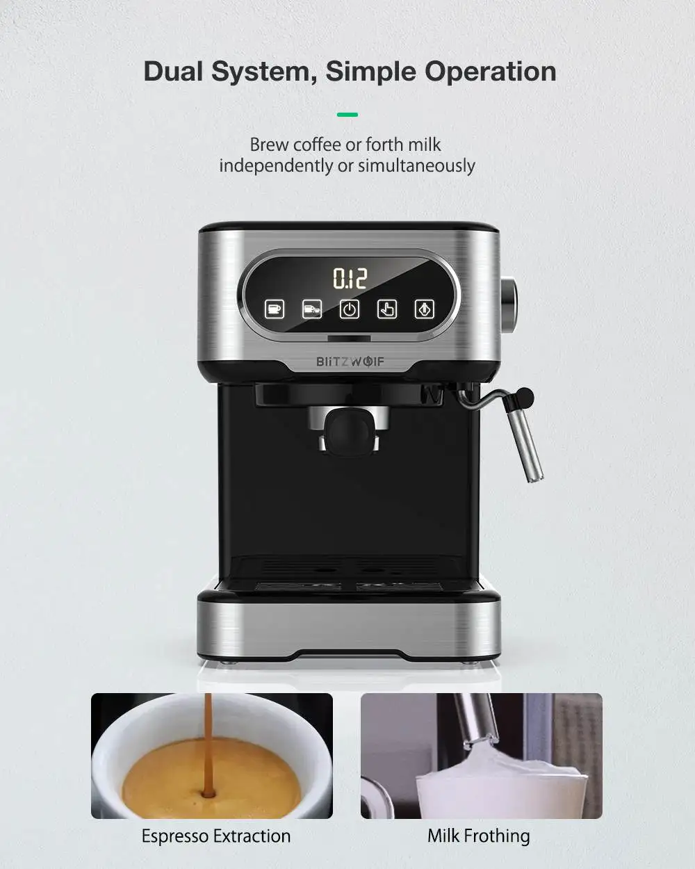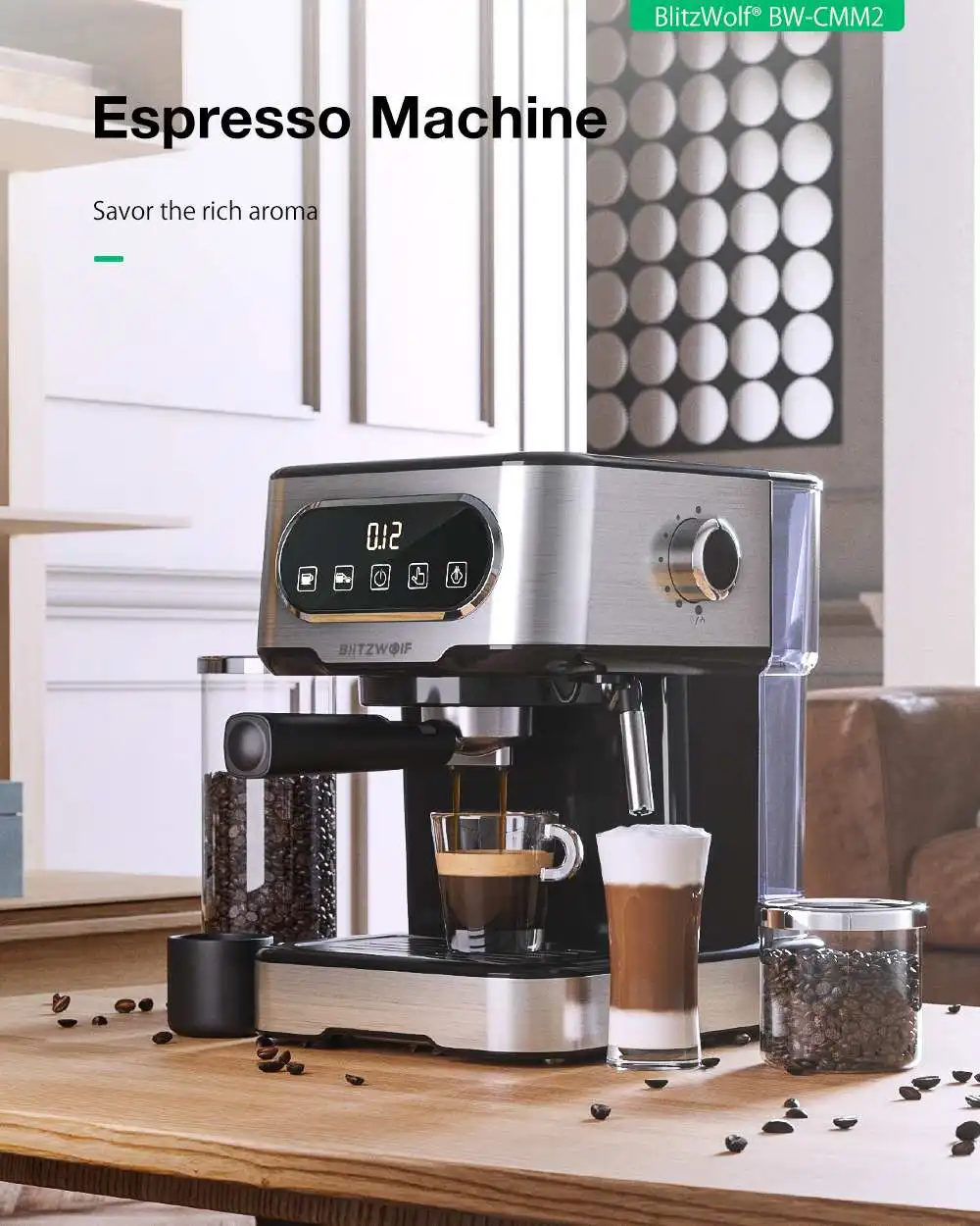 Кофе-машина BlitzWolf полуавтоматическая со вспенивателем молока, 20 бар, 1100 Вт