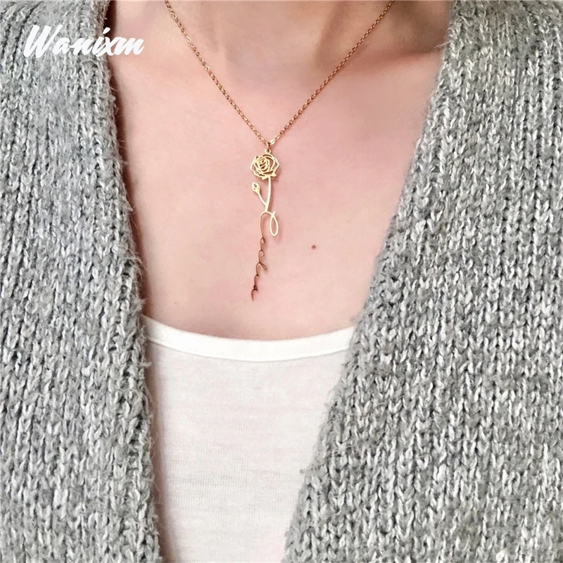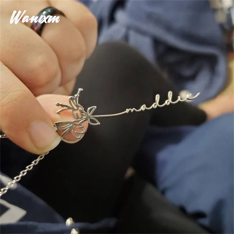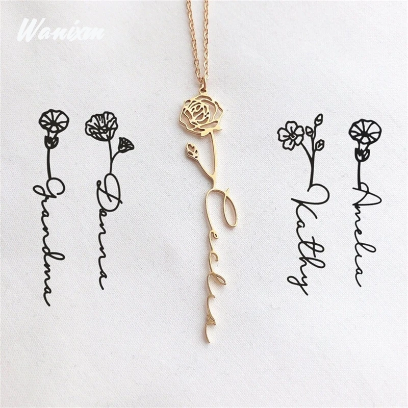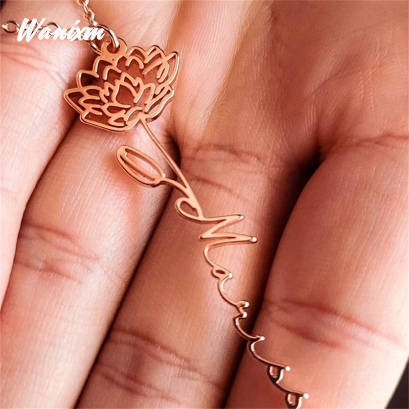Wanixm ожерелье с именем на заказ с родами месяцем цветы из нержавеющей стали кулон Персонализированная Золотая табличка ожерелье женские ювелирные изделия