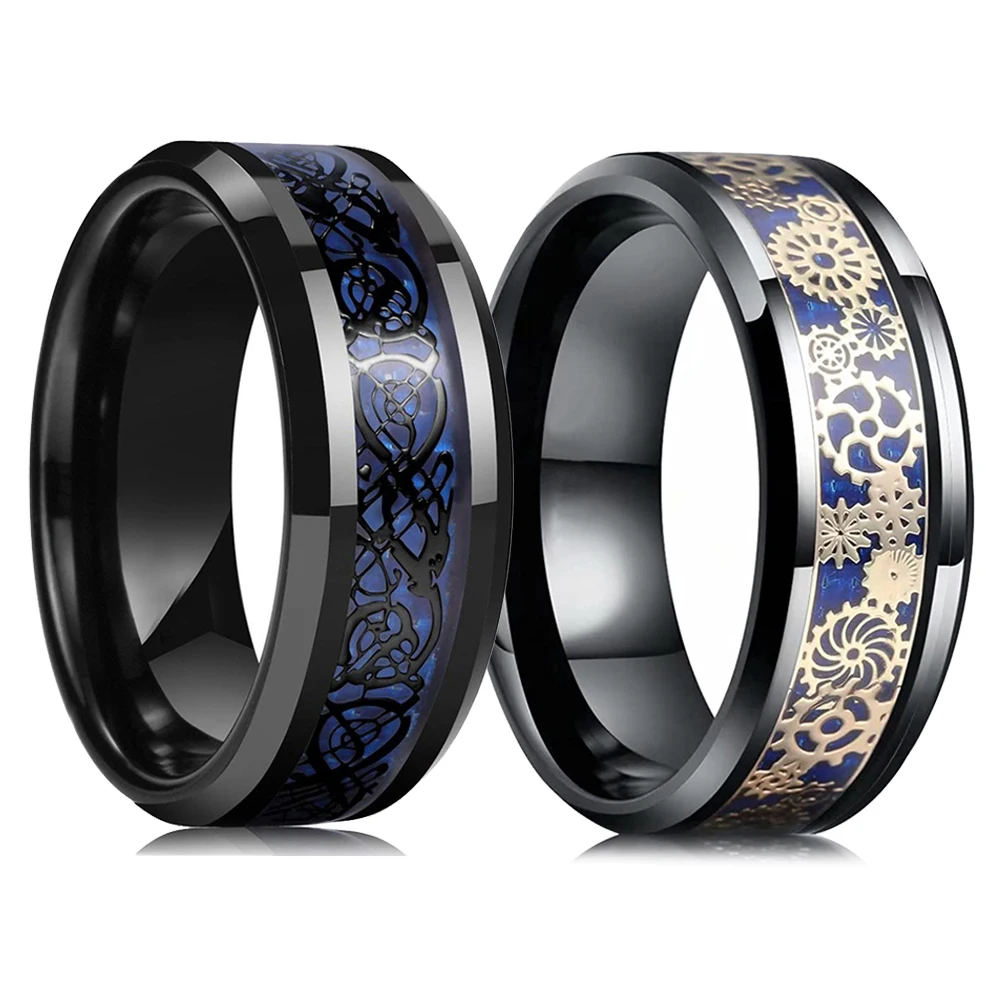 2022 Трендовое мужское черное вольфрамовое обручальное кольцо 8 мм, винтажное панк механическое зубчатое колесо, кольцо из нержавеющей стали, инкрустированное красное кольцо из углеродного волокна