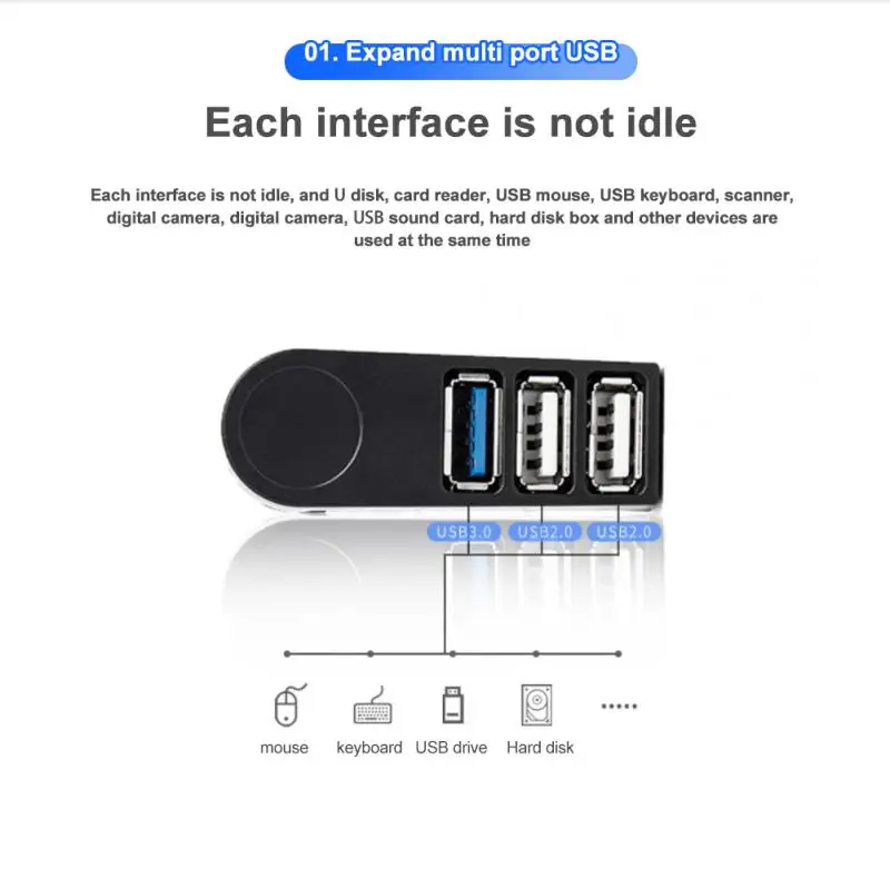 Высокоскоростная передача: Высокоскоростной usb-концентратор, USB3.0 5Gpbs, USB3.0 480Mpbs.