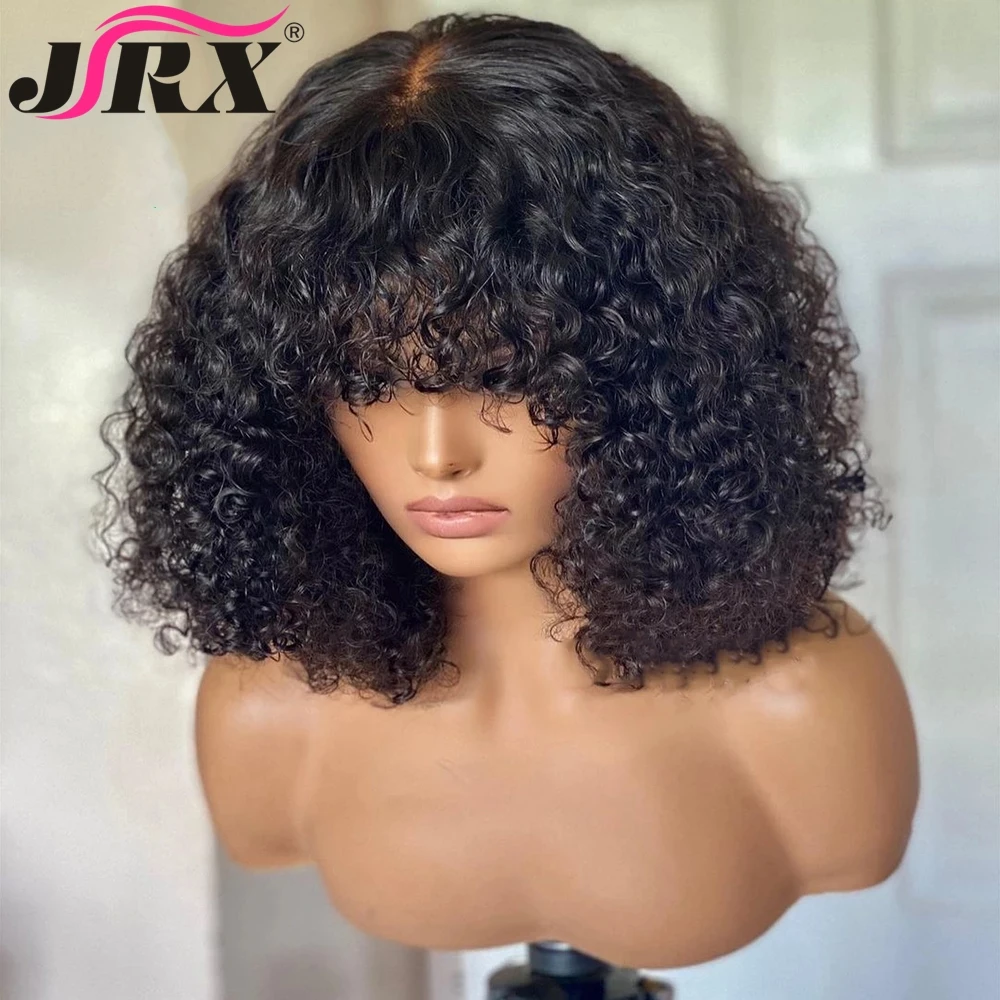Перуанские афро кудрявые человеческие волосы парики с челкой короткие вьющиеся Remy Fringe человеческие волосы машина сделал парики для женщин Glueless