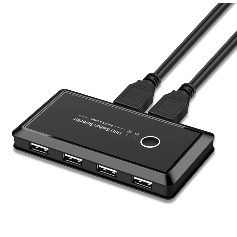 Переключатель замены USB для 2 компьютеров с 4 портами USB 2.0, переключатели KVM для ПК с одной кнопкой и 2 пряди кабеля USB
