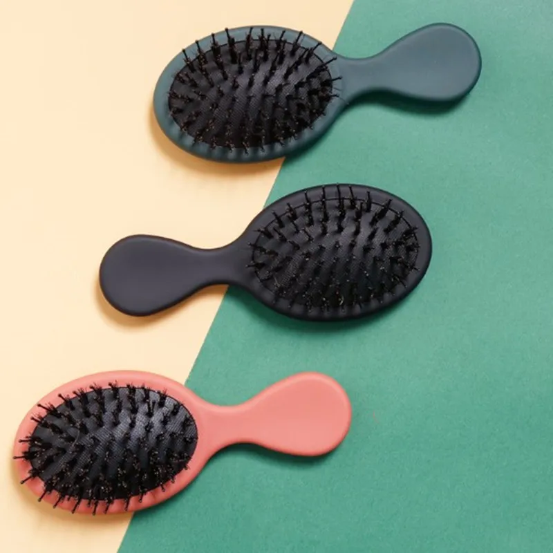 Расческа из натуральной щетины кабана, мини-ручка, массажная расчес...