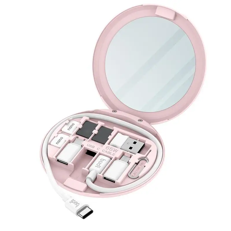 Удобный для путешествий дизайнМногофункциональная коробка представляет собой маленький размер в ладони, в измерениях составляет83x83x9,6 мм этот компактный и может быть легко заправить в вашей сумке сзадиКарман, сумка для гаджетов, сумка, рюкзак, чехол для игровой консоли, ноутбукЧехол или сумка для планшета. Идеально подходит для путешествий и деловых поездокЗеркало для макияжаОткройте крышку коробки. ТамЗеркало за крышкойВечерние ли вы, путешествияИли отправляйтесь на пикник, вы можете носить с собойЭто! Зеркало оснащеноДвусторонняя клейкая лента.Вам нужно вставить его наЗадняя часть чехлаСамостоятельноДержатель для телефонаДолгий полет? Фильм? Свободные руки?Одна секунда для настройки многофункционального budiКоробка в качестве колыбели для телефона. Что вы можете смотретьФильм на вашем телефоне без рук1 шт. USB C к USB C кабель. Поддержка PD зарядкиИ кабель быстрой зарядки (поддерживает 65 Вт)Тип адаптераАдаптер USB A-USB C BUSB C B к адаптеру Micro USBМногофункциональная коробка budi-революционный дизайнКоторая объединяет все основные и наиболее частоИспользуемые кабели Разъемы; Около 29 см Тип CКабель типа C с 3 адаптерамиДо 6 различных типов кабелейВключает: 1*11в1 коробка
